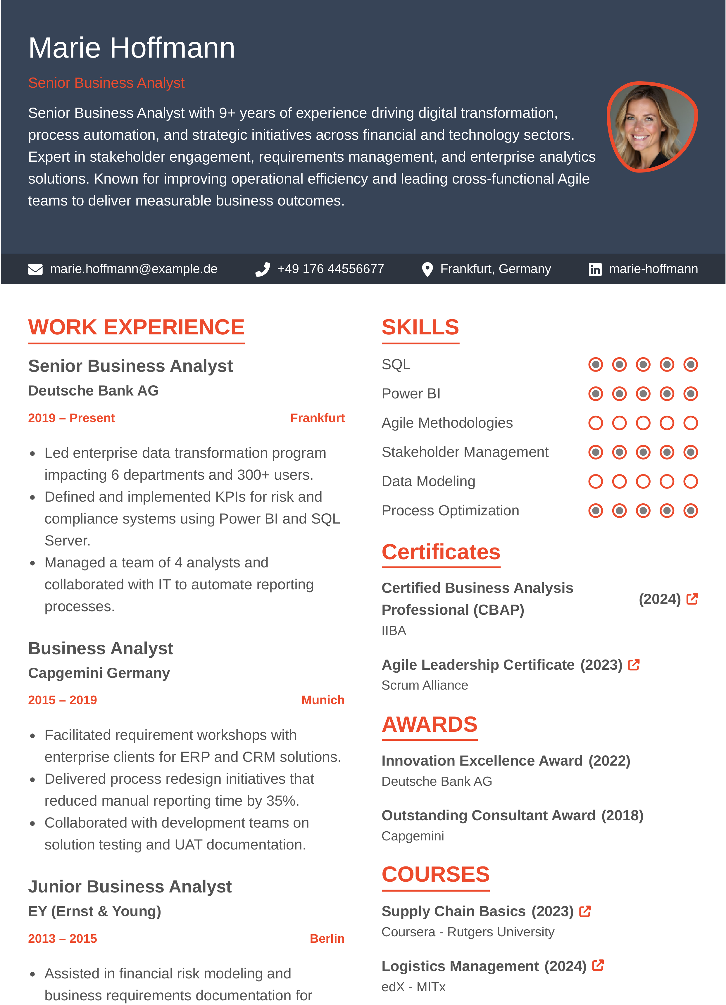 Entry / Junior Business Analyst Resume